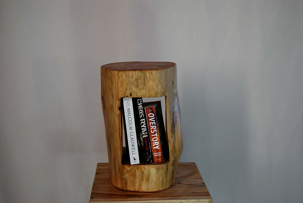 This rough-hewn end table keeps the natural character of the log alive, whilst adding a little bit of urban whimsy and uniqueness with it's carved shelf. Keep your favourite books near you and display them with pride in this gorgeous side table.